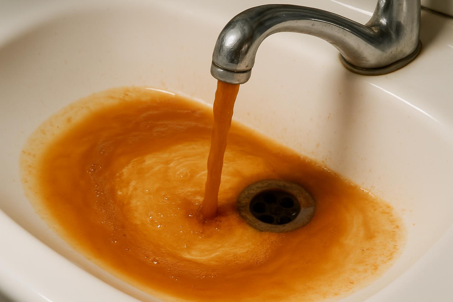 • Orange/brown stains in sinks, toilets, and showers